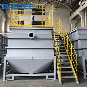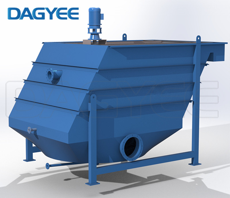 Το σχήμα του κεκλιμένου εξαγνιστή νερού ιζηματογένεσης πιάτων είναι να εγκατασταθεί ένας κεκλιμένος 60° σωλήνας επάνω από το στρώμα αναστολής λάσπης. Με την προσθήκη flocculant στη λάσπη, τα ανασταλμένα στερεά ή τα flocculent λουλούδια στυπτηριών συσσωρεύουν στη λεπτή λάσπη, και έπειτα κάτω από τον κεκλιμένο σωλήνα στην επιφανειακή περιοχή, οι φωτογραφικές διαφάνειες στρώματος αναστολής λάσπης πίσω στηρίζονται στη βαρύτητα, και εγκαθιστούν έπειτα στη χοάνη συλλογής λάσπης, και απαλλάσσονται στη δεξαμενή λάσπης μέσω του σωλήνα λάσπης για τη χωριστή επεξεργασία ή την περιεκτική χρησιμοποίηση. Το υπερκείμενο νερό ανέρχεται βαθμιαία στο σωλήνα συλλογής για την απαλλαγή ή την επαναχρησιμοποίηση.